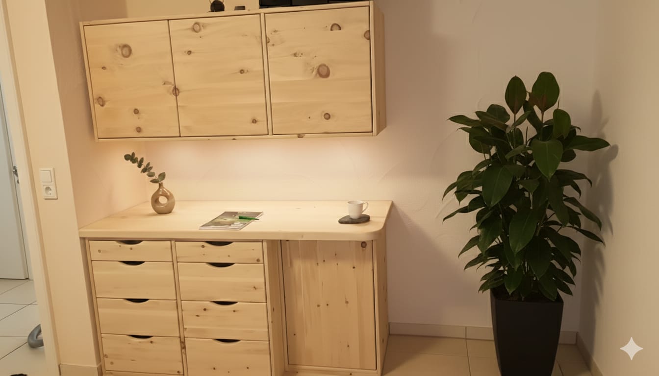 Kurze Projektbeschreibung: Maße, Stil, Holzart, Budget, Termin. Wir hören zu und schlagen passende Lösungen vor.